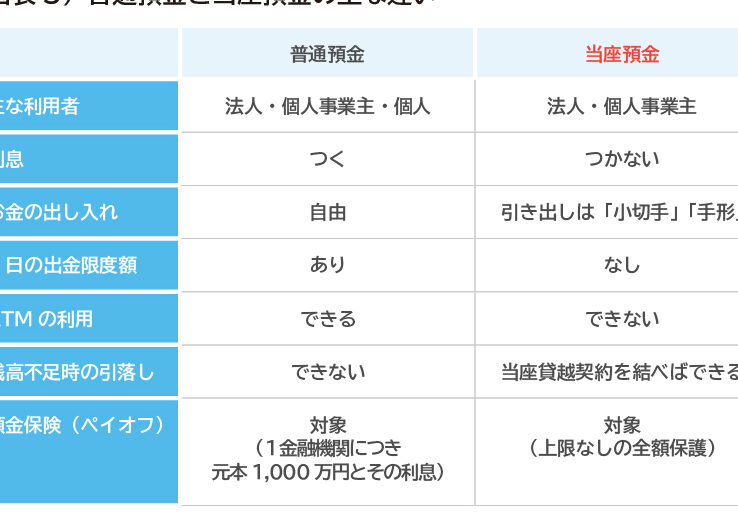 - 普通預金口座は、現金の流動性が高く、自由に資金を引き出せるため、日常の取引に便利です。