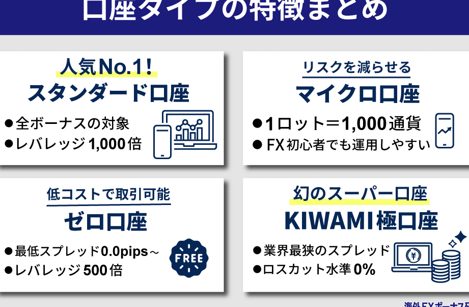 xm口座には独自の特徴があり、それぞれのトレーダーに適した選択肢を提供します。以下に、主な特徴について詳しく解説します。
