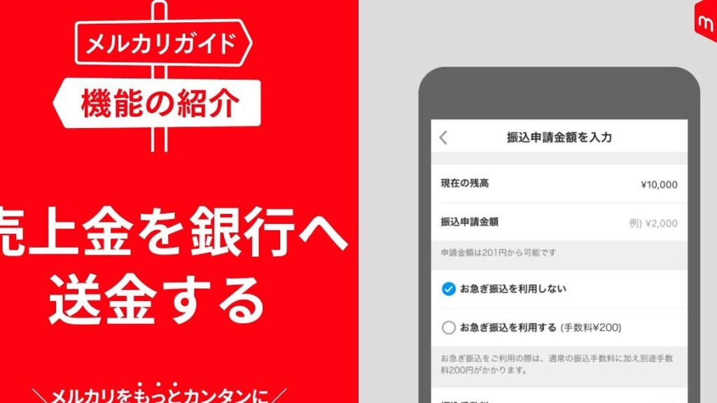 - 緊急性がある場合、メルカリの「即時入金」を利用できることもある