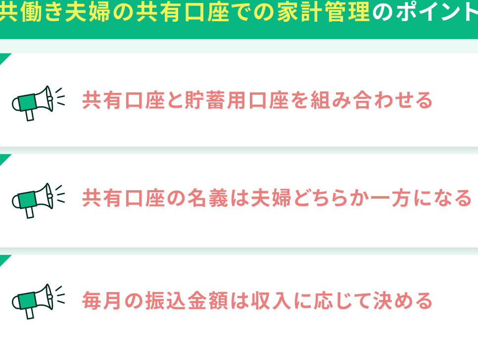 このように、共同口座は家計を一元管理しやすく、賢い選択肢と言えます。