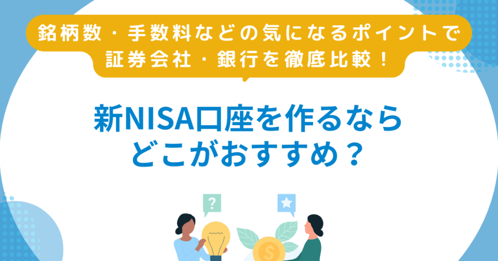 銀行は、一般的な金融機関として新NISA口座を開設できます。多くの銀行は、オンライン手続きが可能で、取引手数料が安い場合もあります。具体的な銀行には次のようなところがあります。