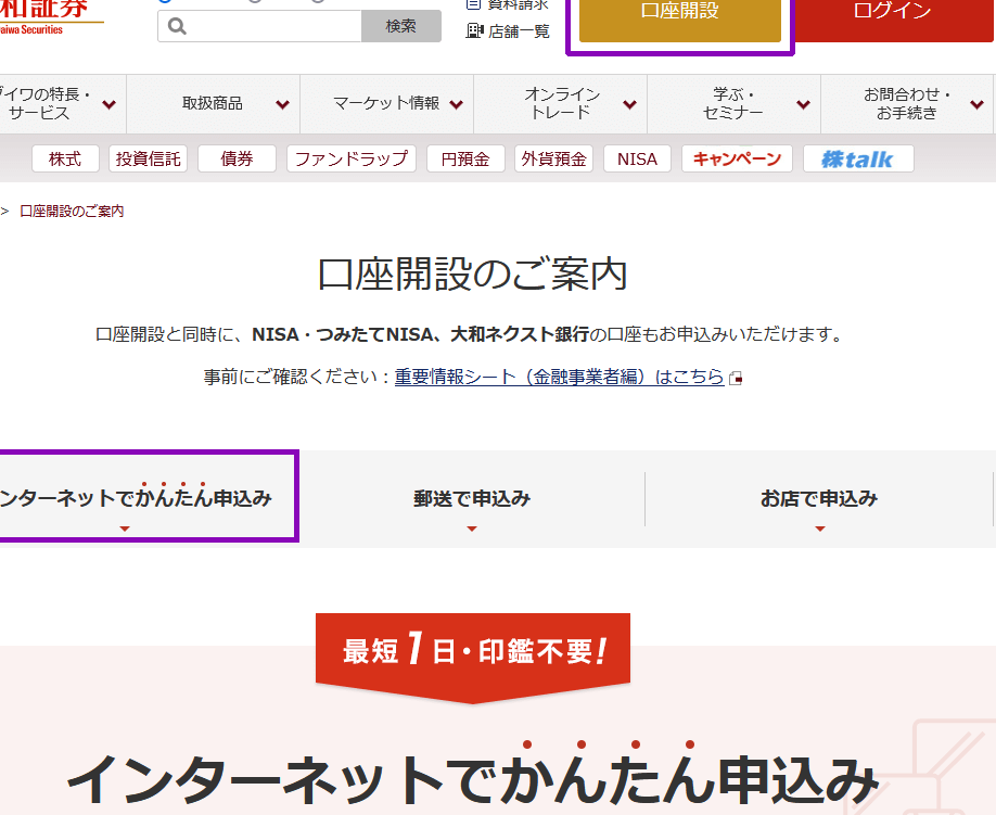 - 店舗訪問: 最寄りの大和証券の店舗に行く。