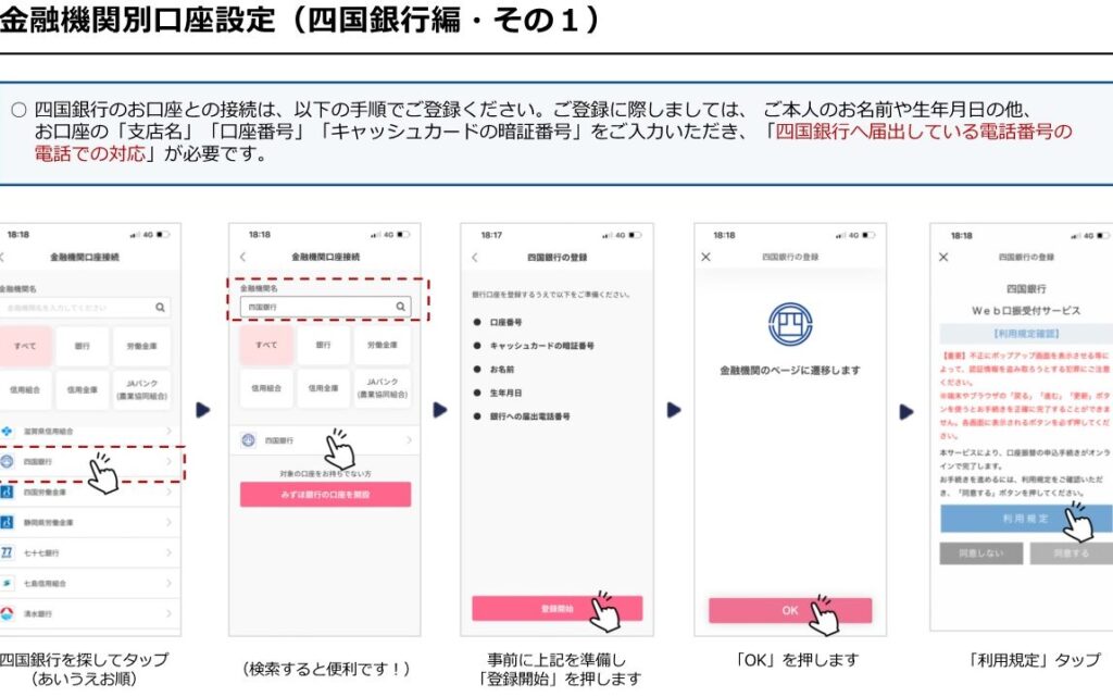- オンラインバンキングのマニュアル: ステップバイステップの利用ガイドがあります。