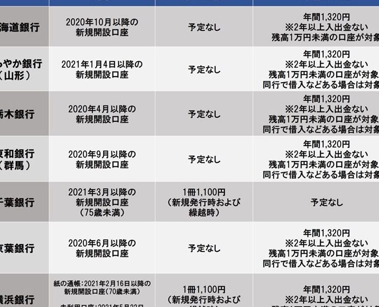 - 月額維持費: 一部の銀行では、口座を維持するために月額の手数料が必要です。この金額は約100円から数百円の範囲で変動します。