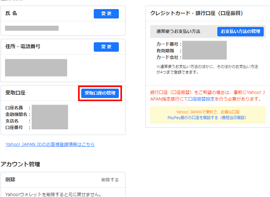 ヤフーカード 口座変更の概要