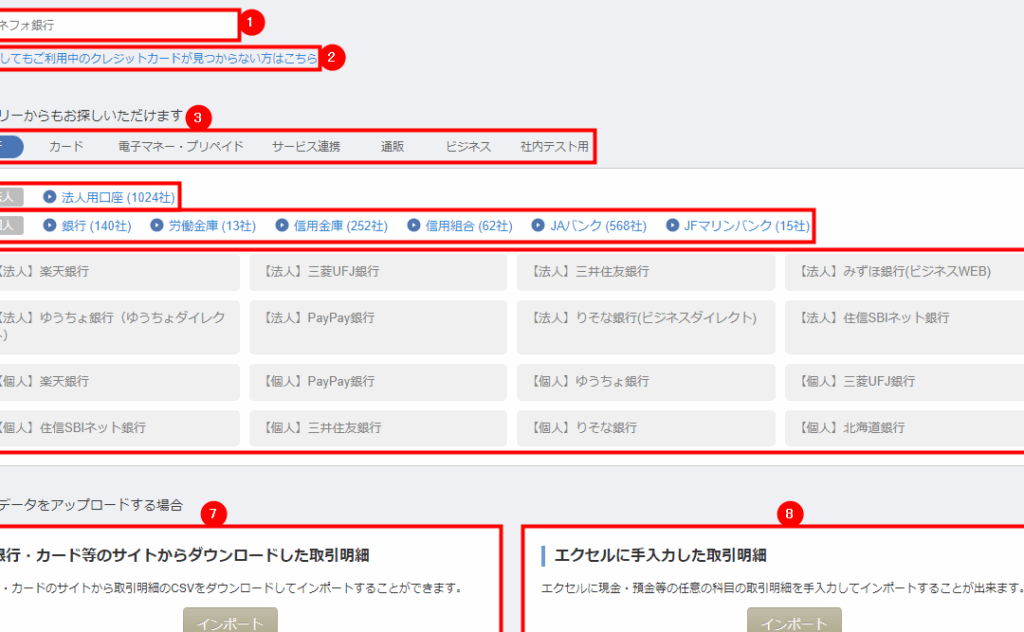 - オンラインバンキング情報の入力: 銀行のアカウント情報を入力することで、自動的に取引履歴が引き込まれます。