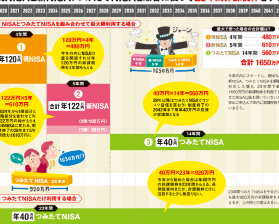 - 年間投資枠: 新NISAでは、年間の投資枠がさらに拡大され、一般NISAと特定口座の併用が可能です。これにより、より多くの資産を非課税で運用できるようになります。