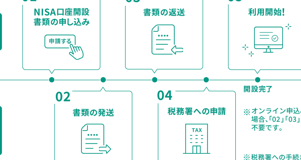 さらに、NISA口座を開設するためには、金融機関によって異なる手続きがあります。選ぶ金融機関の指示に従って、書類を提出する必要があります。通常、オンラインでの手続きも利用でき、これにより開設までの時間が短縮されることが多いです。