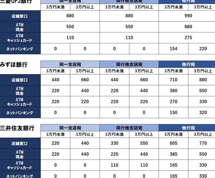 他行の口座振替手数料は、UFJと比較すると異なる場合があります。多くの金融機関で、手数料体系が異なり、利用者に影響を与えます。以下に主要な金融機関の手数料を示します。