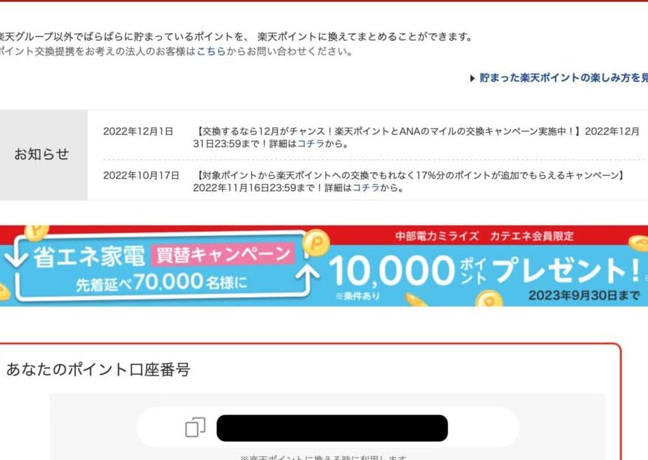 - ポイント残高の確認:口座番号により、現在のポイント残高を簡単に確認できます。