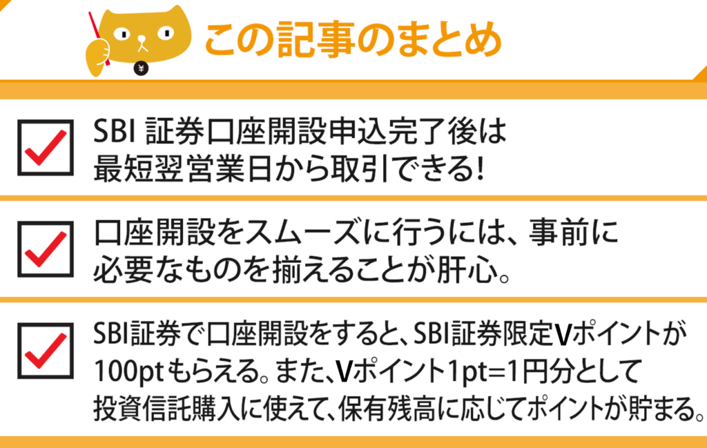 SBI証券の口座開設には、一般的にスムーズに進むケースが多いです。すぐに必要な書類を準備して online で申込みを行うことで、口座開設を即日完了させることも可能です。しかし、郵送での書類提出が必要な場合、開設までに数日かかることがあります。以下に、詳細なプロセスを示します。