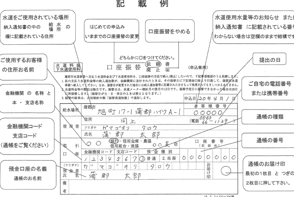 - 口座振替依頼書
