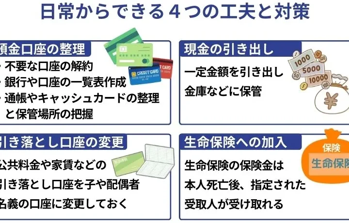 口座名義人が死亡した際も、口座凍結が行われることが一般的です。この場合、金融機関は口座の安全を確保し、遺産の管理を行うために凍結を実施します。具体的には、次のような手続きが行われます。