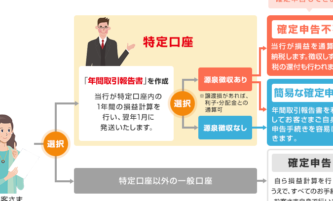 特定口座は、金融機関が提供する投資口座の一種であり、税金の計算と申告を簡素化するための仕組みだ。我々の税務処理を負担軽減させるため、特定口座の利用が多くの投資家に好まれている。