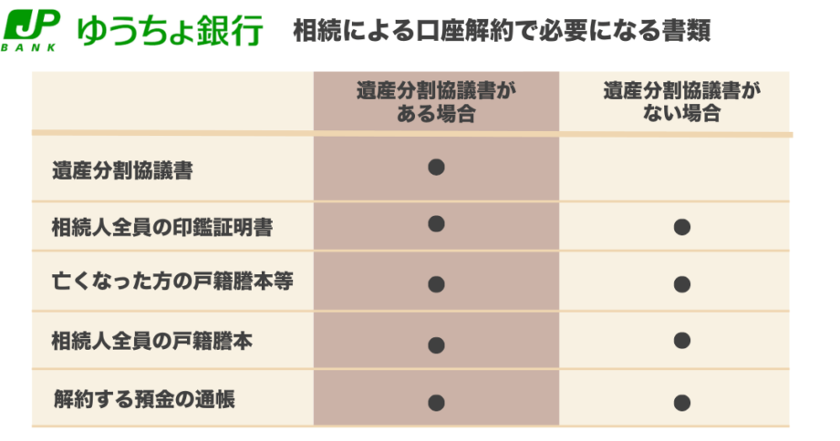 ゆうちょ銀行の口座を死亡で解約するには何が必要か